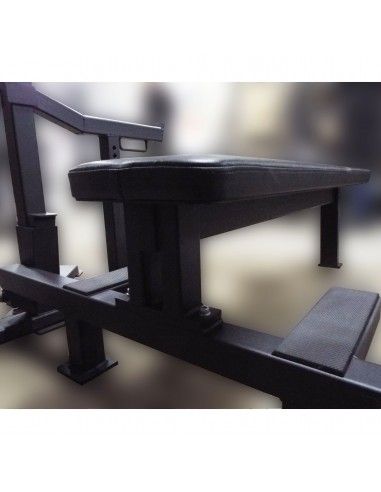 Вторая функция тренажера (с демонтированной скамьей) - вспомогательная при тренировке мышц ног при помощи приседаний с отягощением в виде штанги. Основную нагрузку при тренировке получают четырехглавая мышца бедра и большая ягодичная мышца. Дополнительно тренируются внутренняя и задняя поверхности бедра.