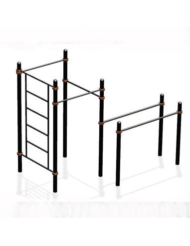 Воркаут комплекс: турник-3, брусья, стенка Д-108 AVW021 предназначен для физических упражнений с использованием собственного веса. Этот спортивный комплекс укрепляет и развивает мышцы плечевого пояса, рук, груди, спины, пресса. Воркаут комплекс состоит из шведской стенки, трех перекладин для подтягивания и брусьев, которые крепятся к семи опорным столбам с диаметром 108 мм при помощи стальных хомутов. Спортивный снаряд покрыт полимерным покрытием, устойчивым к механическим повреждениям и атмосферным воздействиям.