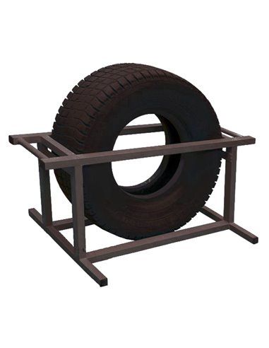 Тренажер Дровосек представляет собой автомобильную покрышку в металлической раме, которая удерживает эту покрышку. В комплект входит булава весом 5 кг.