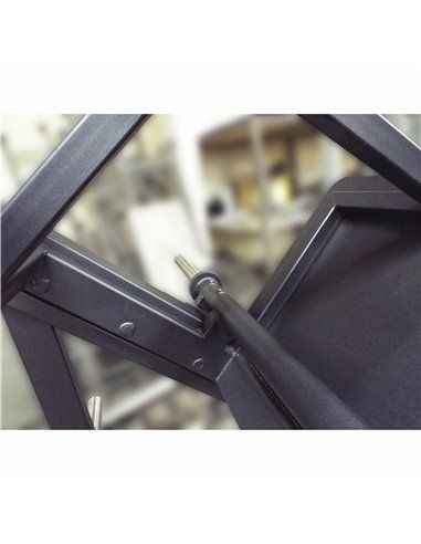 - Для удержания площадки в верхней части тренажер оснащен поворотным механизмом фиксации опорной площадки, установленным с обеих сторон по ходу движения площадки с возможностью фиксации в двух положениях.