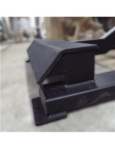 - Мягкие части тренажёра выполнены из многослойной фанеры и пенополиуретана повышенной прочности толщиной 40 мм, покрытых искусственной кожей плотностью 650 г/м2 и устойчивостью к истиранию более 100 000 циклов, мягкая часть крепится к стальному основанию болтовыми соединениями.