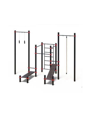 Воркаут комплекс: турник-3, канат, кольца, стенка, пресс-скамья-2 Д-108 AVW023