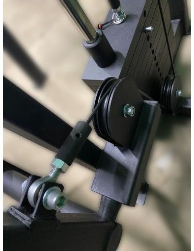 - Стальной латунированный трос с полиуретановой оболочкой повышенной износостойкости плавно передает усилие с опорной площадки на грузоблочный стек.