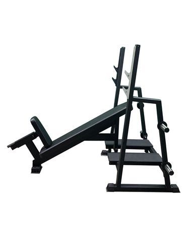 - Тренажёр дополнен обрезиненной страховочной площадкой и накопителями из нержавеющей стали для хранения дисков для штанги.