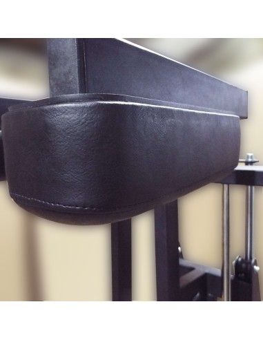 - Обивка плечевых упоров тренажера выполнена из искусственной кожи плотностью 650 г/м2 и устойчивостью к истиранию более 100 000 циклов.