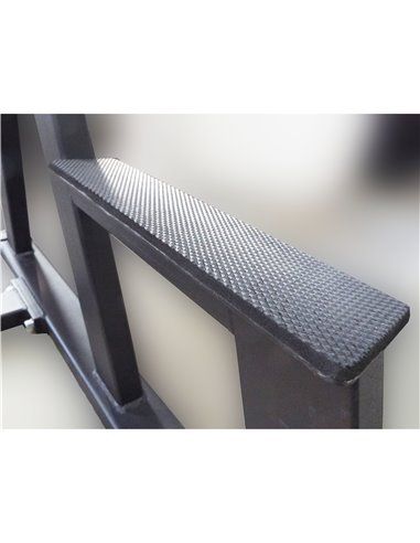 - Тренажёр оборудован амортизирующими подпятниками, которые препятствуют скольжению и защищают покрытие пола тренажёрного зала от повреждений.