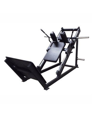 Это мощный спортивный снаряд для тренировки ног, состоящий из двух боковых рам-горок, соединенных в единую конструкцию. Между боковыми рамами-горками установлена и свободно перемещается опорная площадка для спины и плеч, имеющая держатели для дисков, которые и создают рабочую нагрузку. Ход площадки ограничивает упор безопасности и остановочный механизм тренажера, посредством которого площадка может фиксироваться в двух верхних исходных положениях для выполнения жима ногами. Для удобства в хранении и транспортировке тренажер изготавливается разборным, для надежности соединения конструкция имеет мощные 10-миллиметровые фланцы с резьбой.-