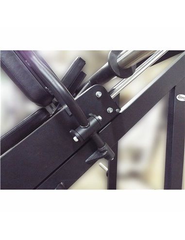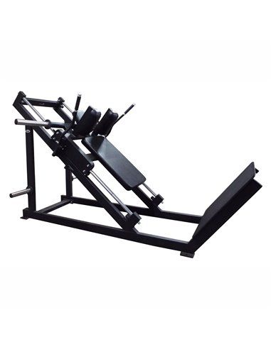 Это мощный спортивный снаряд для тренировки ног, состоящий из двух боковых рам-горок, соединенных в единую конструкцию. Между боковыми рамами-горками установлена и свободно перемещается опорная площадка для спины и плеч, имеющая держатели для дисков, которые и создают рабочую нагрузку. Ход площадки ограничивает упор безопасности и остановочный механизм тренажера, посредством которого площадка может фиксироваться в двух верхних исходных положениях для выполнения жима ногами. Для удобства в хранении и транспортировке тренажер изготавливается разборным, для надежности соединения конструкция имеет мощные 10-миллиметровые фланцы с резьбой.