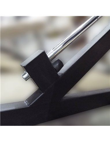 - Для удержания площадки в верхней части тренажер оснащен поворотным механизмом фиксации опорной площадки, установленным с обеих сторон по ходу движения площадки с возможностью фиксации в двух положениях.