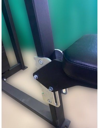 - В нижней части конструкции закреплены горизонтальное сиденье и вертикальная спинка, которая также выполняет роль опоры для груди при выполнении упражнения на задние дельты, когда спортсмен находится лицом к снаряду.