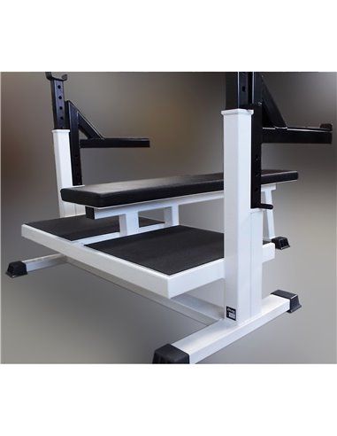 - Боковые страховочные площадки предназначены для удержания штанги в случае её падения во время выполнения упражнения, если у спортсмена не хватило сил поставить её самостоятельно на крюки.