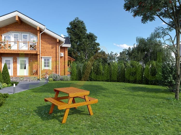 - - Основной материал – древесина, обладающая экологичностью, долговечностью и эстетичностью. Благодаря своим уникальным свойствам, дерево не нагревается под лучами солнца, как это происходит с металлом и пластиком.