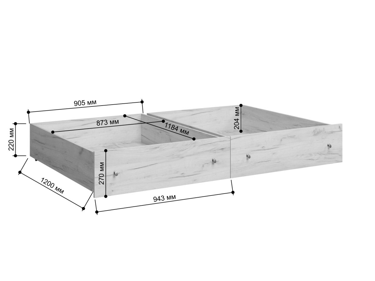 Ящики идеально подходят для наших кроватей Арга, Арга Лофт, Титан, Титан Лофт, Валенсия, Раута.Ширина см. 94 Глубина см. 120 Высота см. 27 Материал каркаса ЛДСП Материал фасада ЛДСП Вес изделия кг. 45 Гарантия 12 месяцев Особенности Выдвижные Цвет крафт табак Ящики для белья Да -