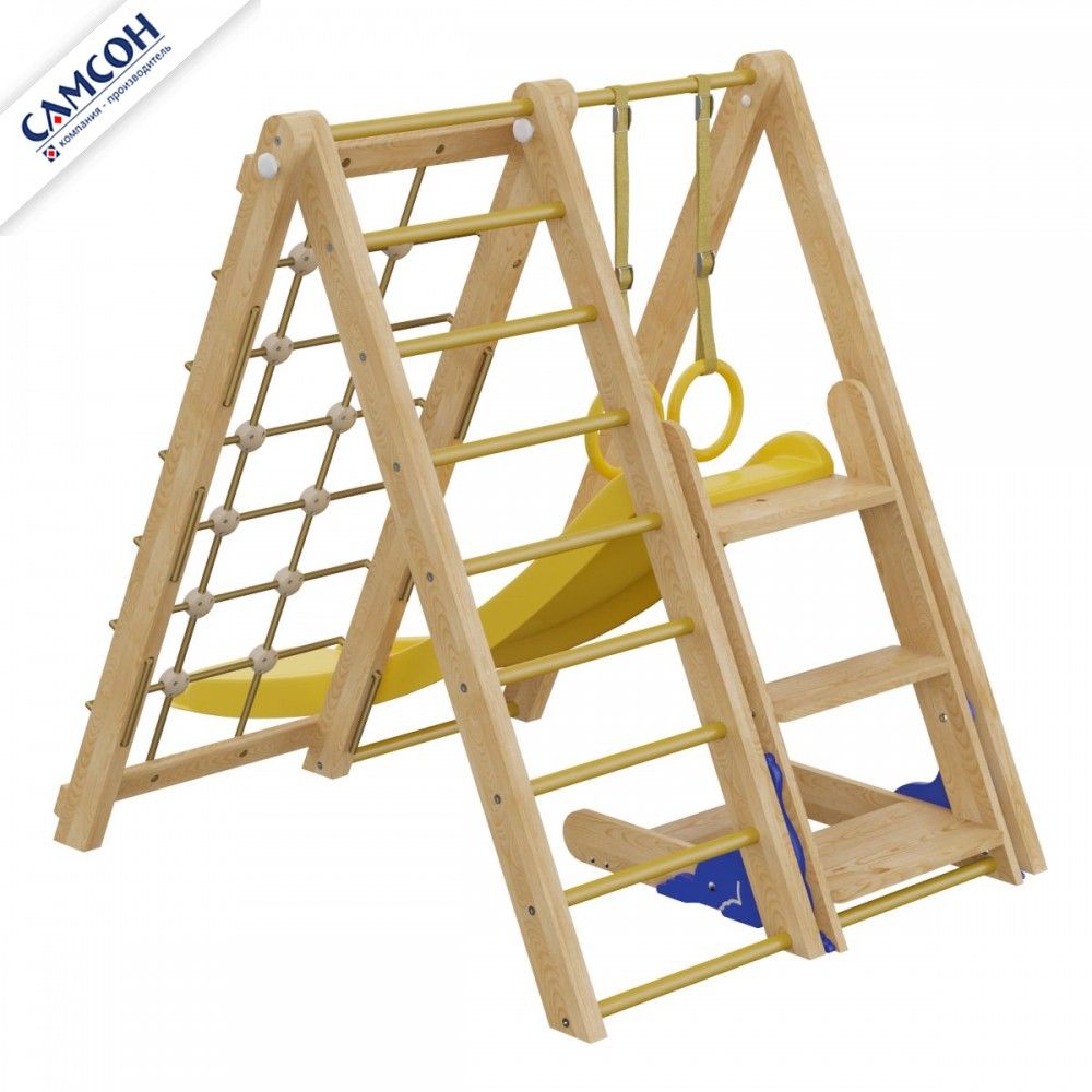 Детский складной спортивный игровой комплекс "Сет Симба-Тоба" для самых маленьких. Предназначен для детей от 3 до 9 лет, и создает условия, обеспечивающие физическое развитие ребенка, развивающие координацию движений, преодоление страха высоты, ловкость и смелость. Благодаря компактным размерам он не занимает много места. Деревянный спортивный уголок - удобный и полезный снаряд для развития физических способностей ребенка!