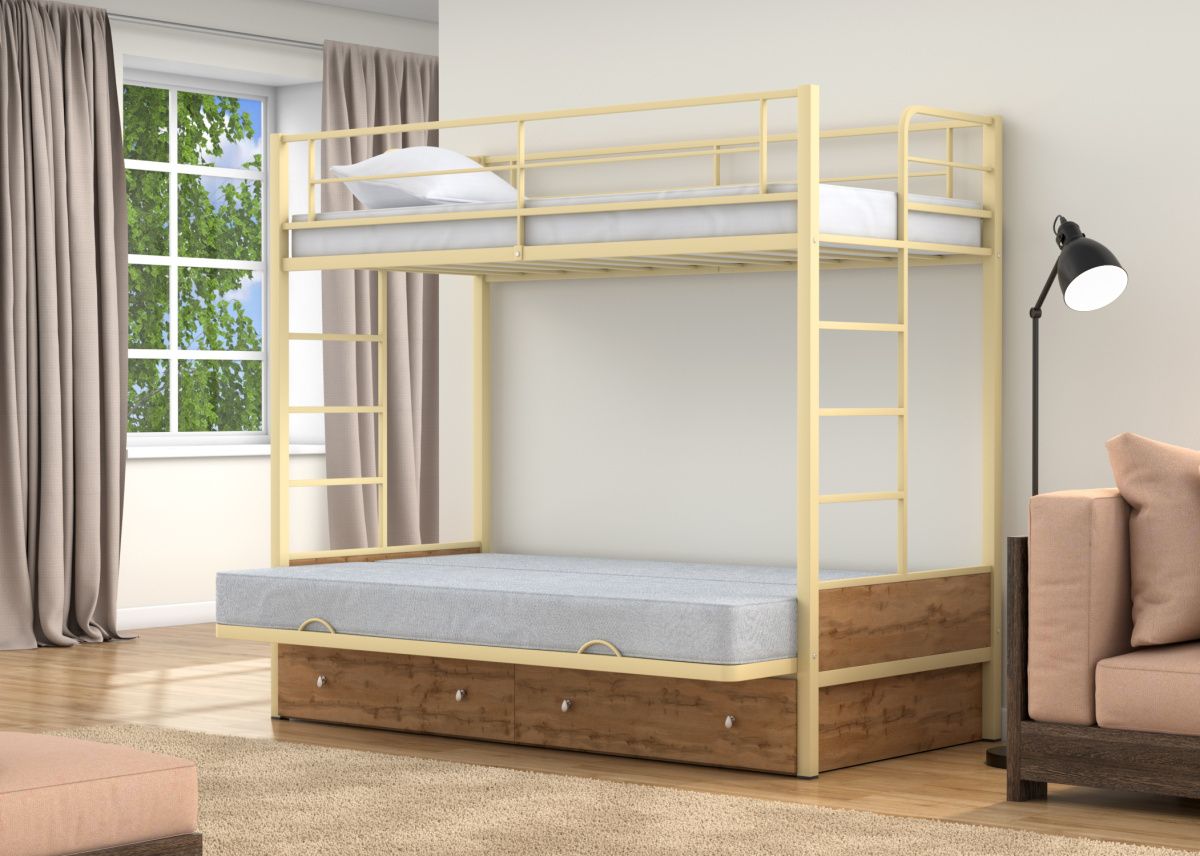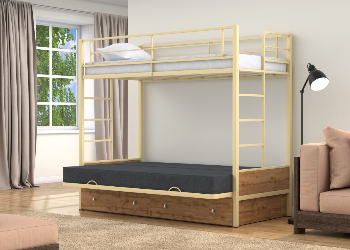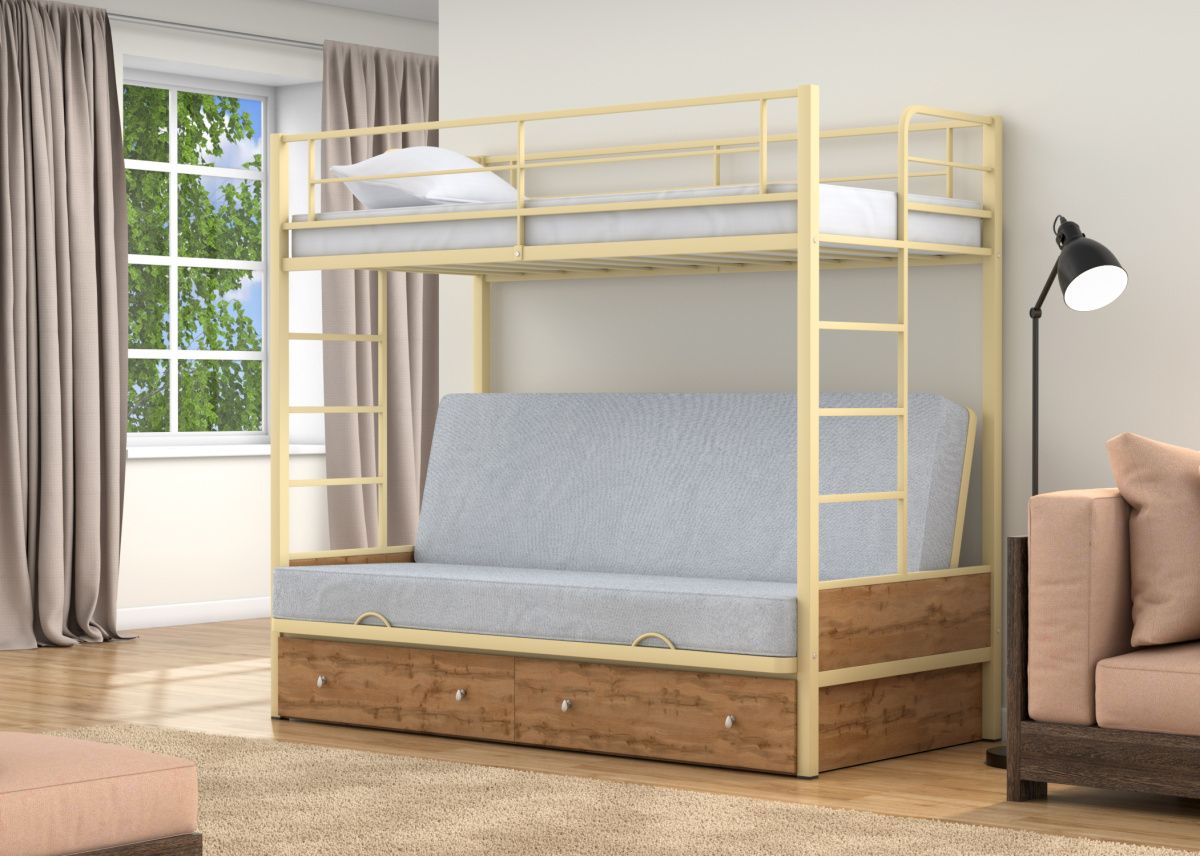 Двухъярусная кровать-диван Дакар 1 Слоновая кость от Фабрики мебели 4 Сезона.