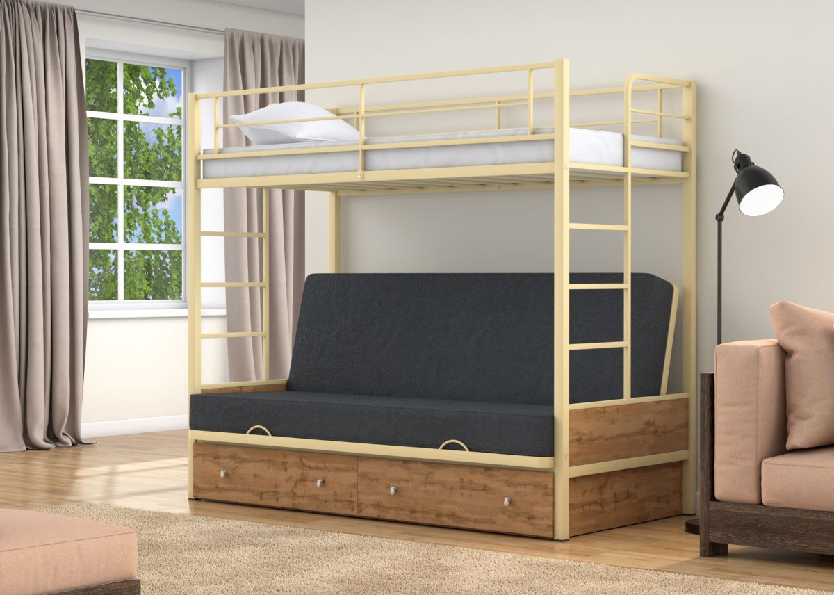 Нижний диван входит в стоимость изделия, цвет на выбор черный или светло-серый, верхний матрас приобретается отдельно.