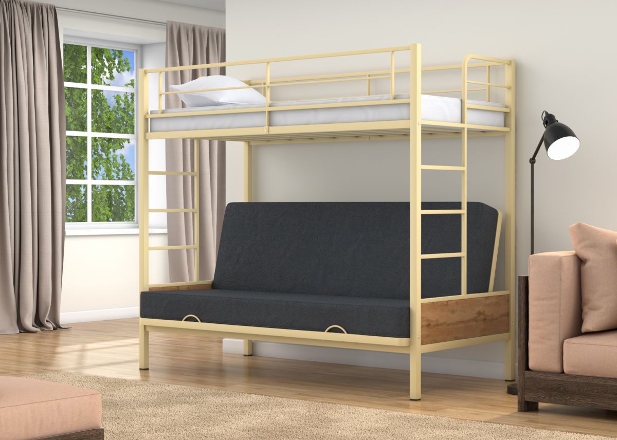 Двухъярусная кровать-диван Дакар 1 - многофункциональная модель, которая вмещает в себя одновременно и место для отдыха всей семьи, так и два полноценных спальных места, расположенных параллельно друг другу. Кровать исполняется в нескольких стандартных цветах: Слоновая кость, Коричневый, Черный, Серый, Белый.