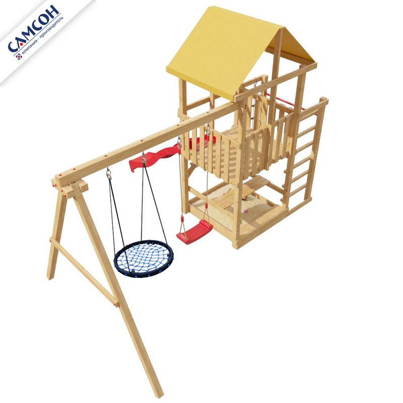 Детская площадка Самсон 5-й Элемент с гнездом предназначена для детей от 4 до 9 лет, создает условия, обеспечивающие физическое развитие ребенка, развивающие координацию движений, преодоление страха высоты, ловкость и смелость, чувство коллективизма в массовых играх.