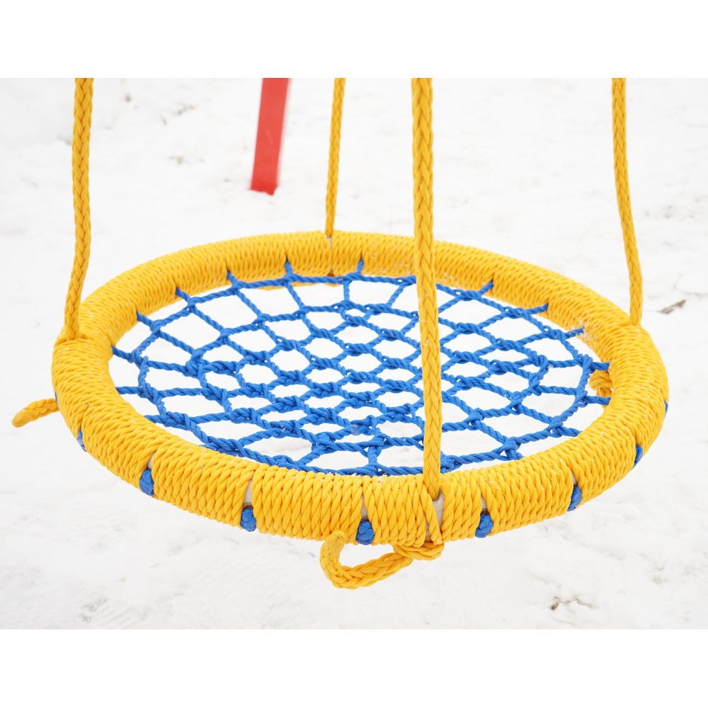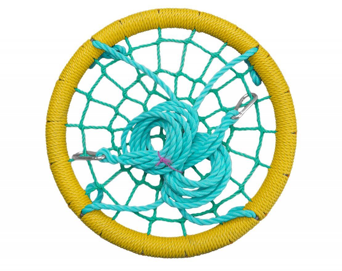 - Подвесы и обод качелей изготовлены из крученого полимерного каната толщиной 16 мм;