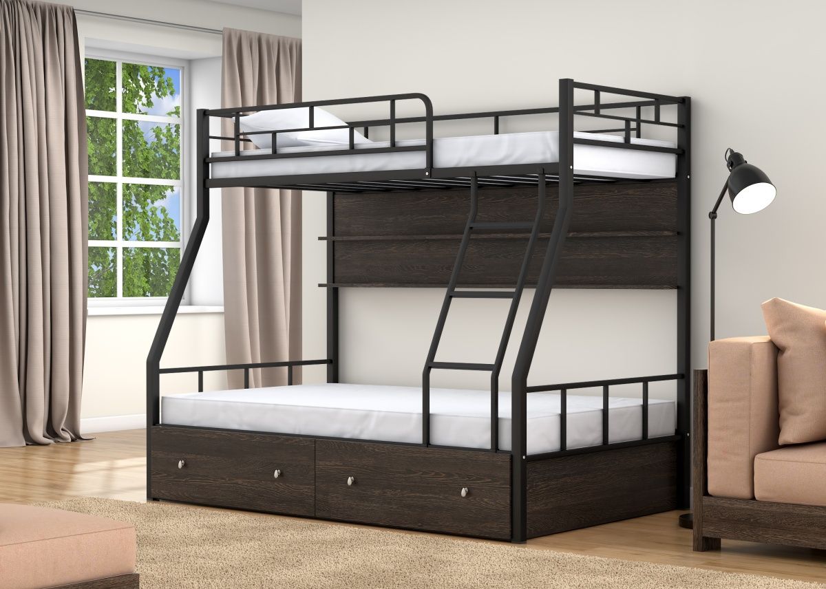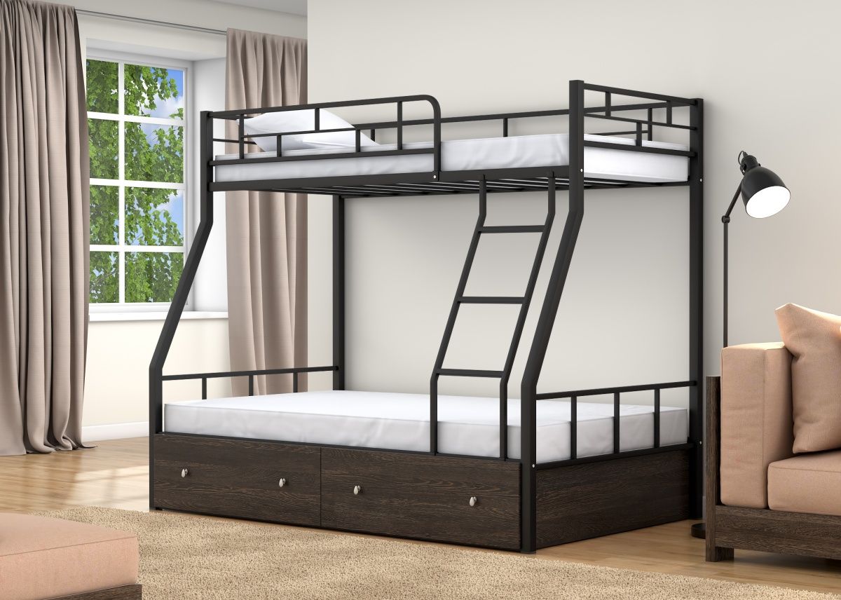 Двухъярусная кровать Раута, классическое исполнение своего сегмента. Одна из самых востребованных моделей, вместила в себя массу преимуществ: доступная цена, экономия пространства, оригинальный дизайн. Кровать сделана из металла, покрыта безопасной порошковой краской, выдерживает нагрузку до 150 кг. на спальное место, размерами 190х120 см. и 190х90 см., благодаря чему отлично подходит детям с разницей в возрасте. Цвета исполнения слоновая кость, коричневый, черный, так же Вы можете заказать иное цветовое исполнение (уточните пожалуйста у менеджера). Матрас не входит в стоимость.