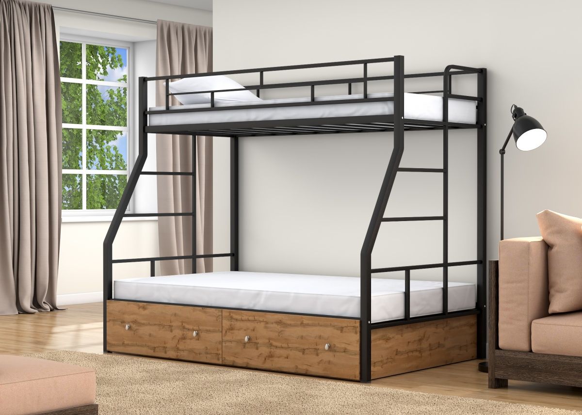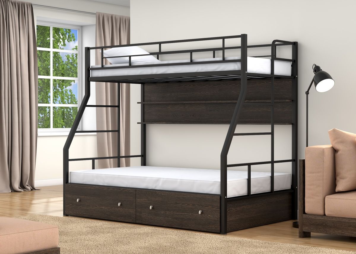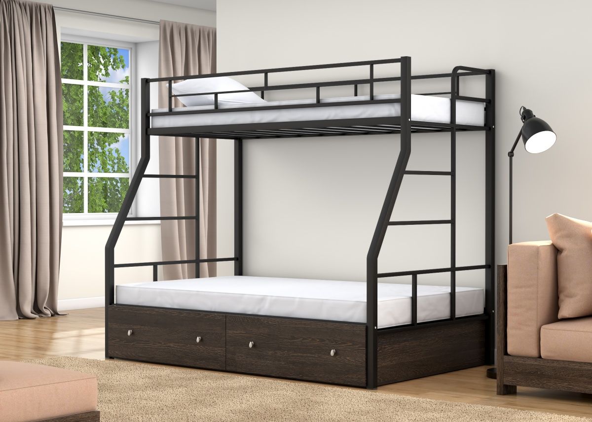 Двухъярусная кровать Раута, классическое исполнение своего сегмента. Одна из самых востребованных моделей, вместила в себя массу преимуществ: доступная цена, экономия пространства, оригинальный дизайн. Кровать сделана из металла, покрыта безопасной порошковой краской, выдерживает нагрузку до 150 кг. на спальное место, размерами 190х120 см. и 190х90 см., благодаря чему отлично подходит детям с разницей в возрасте. Цвета исполнения слоновая кость, коричневый, черный, так же Вы можете заказать иное цветовое исполнение (уточните пожалуйста у менеджера). Матрас не входит в стоимость.