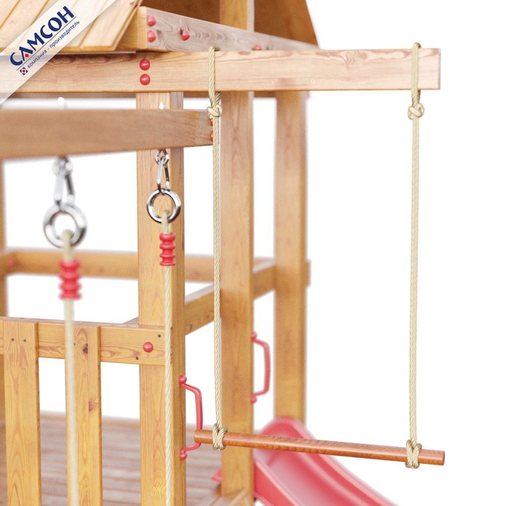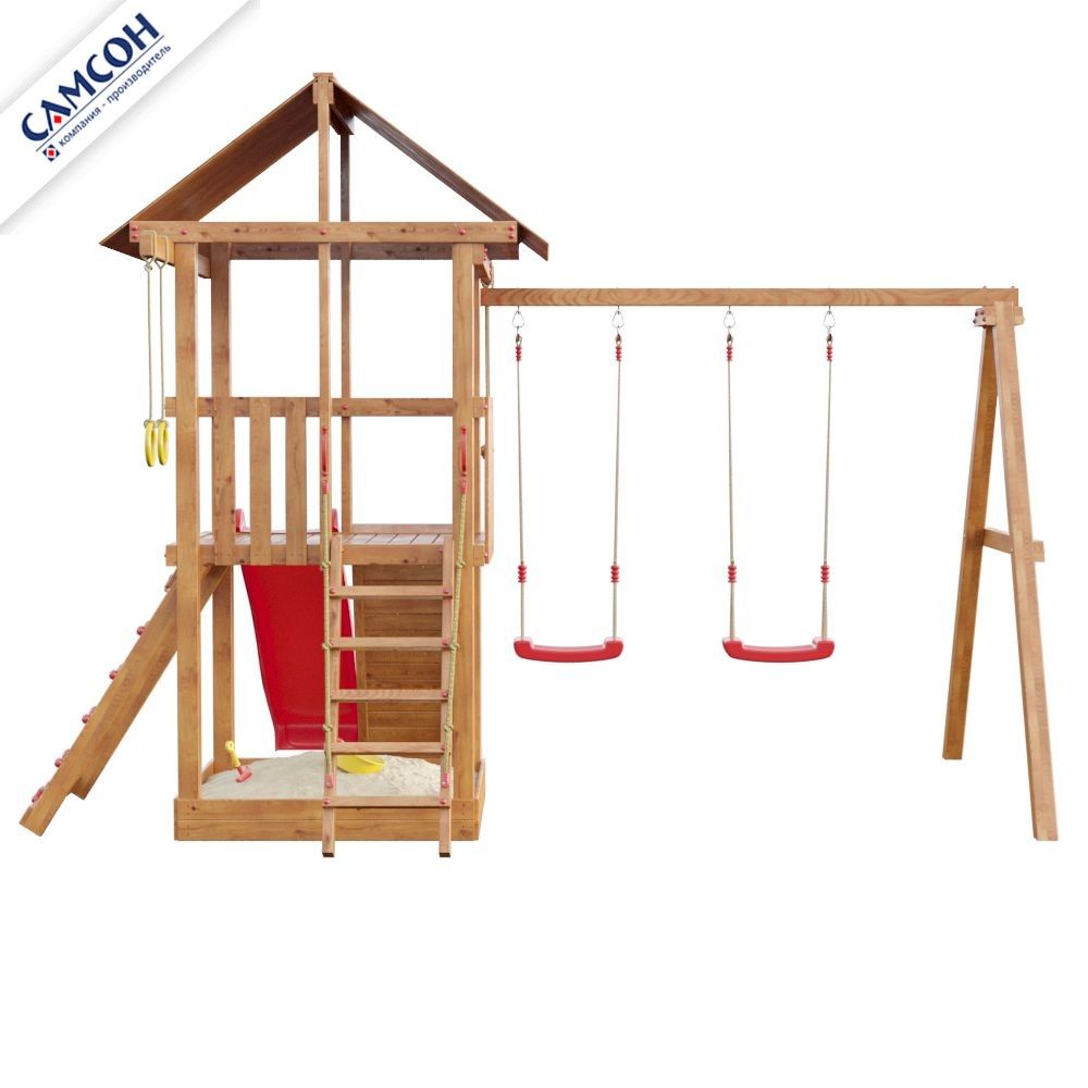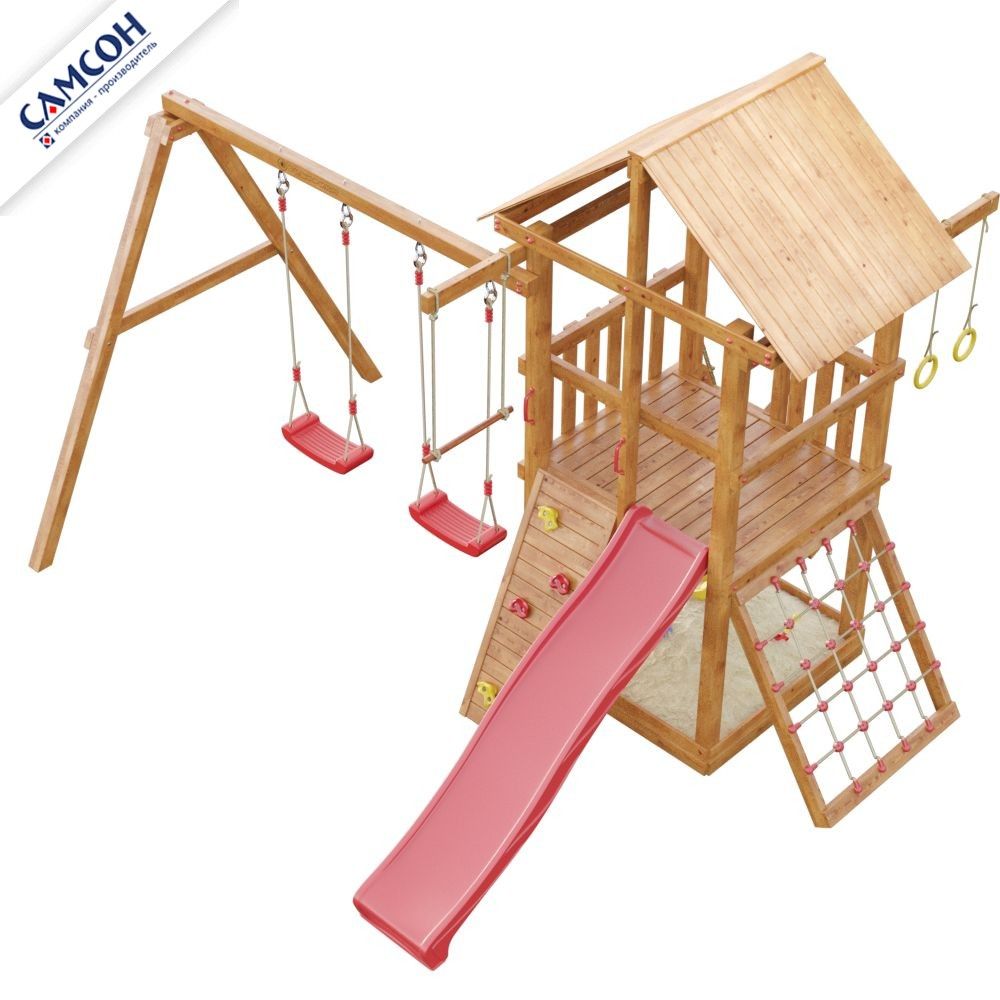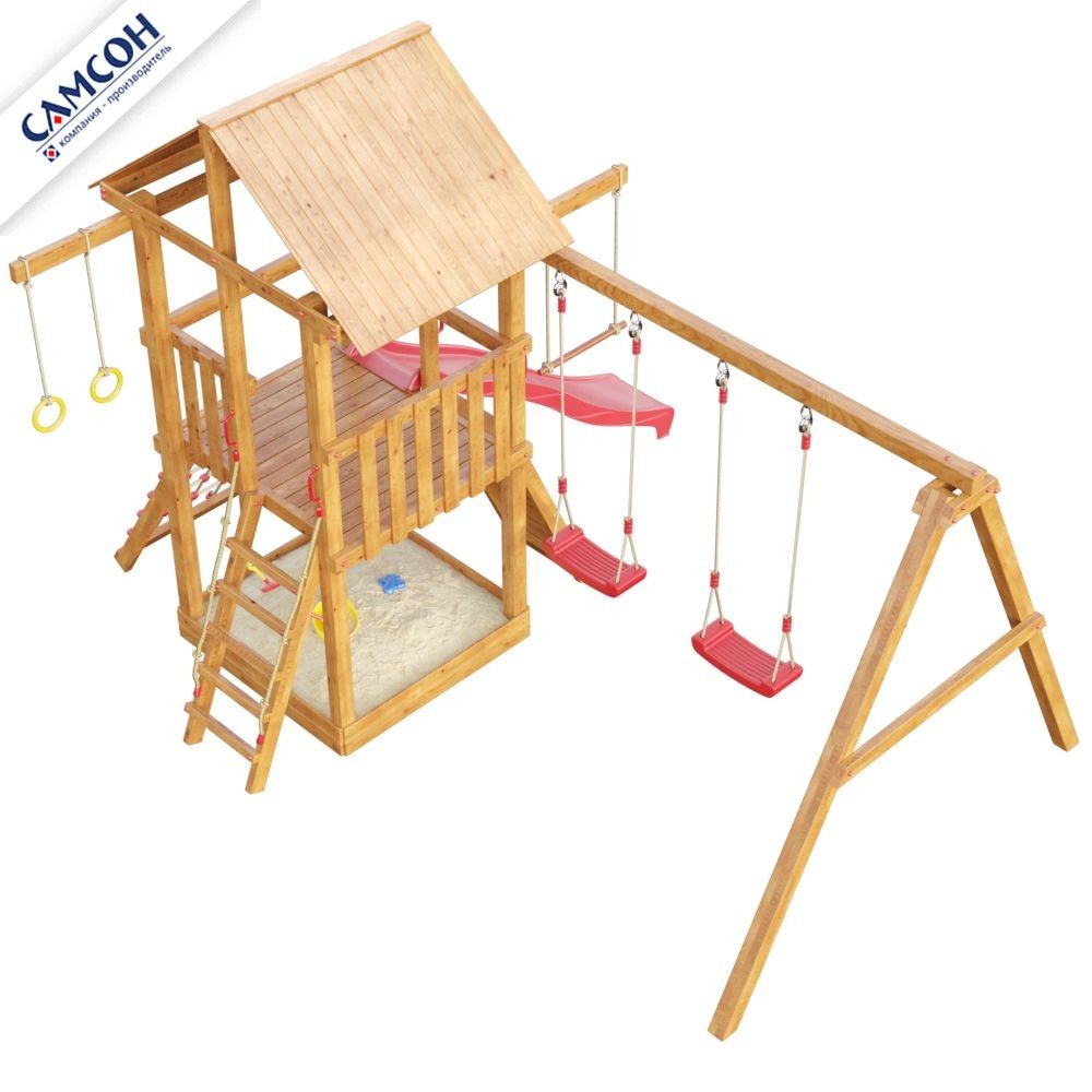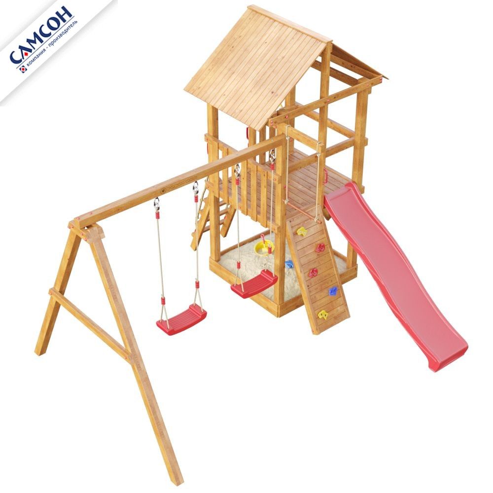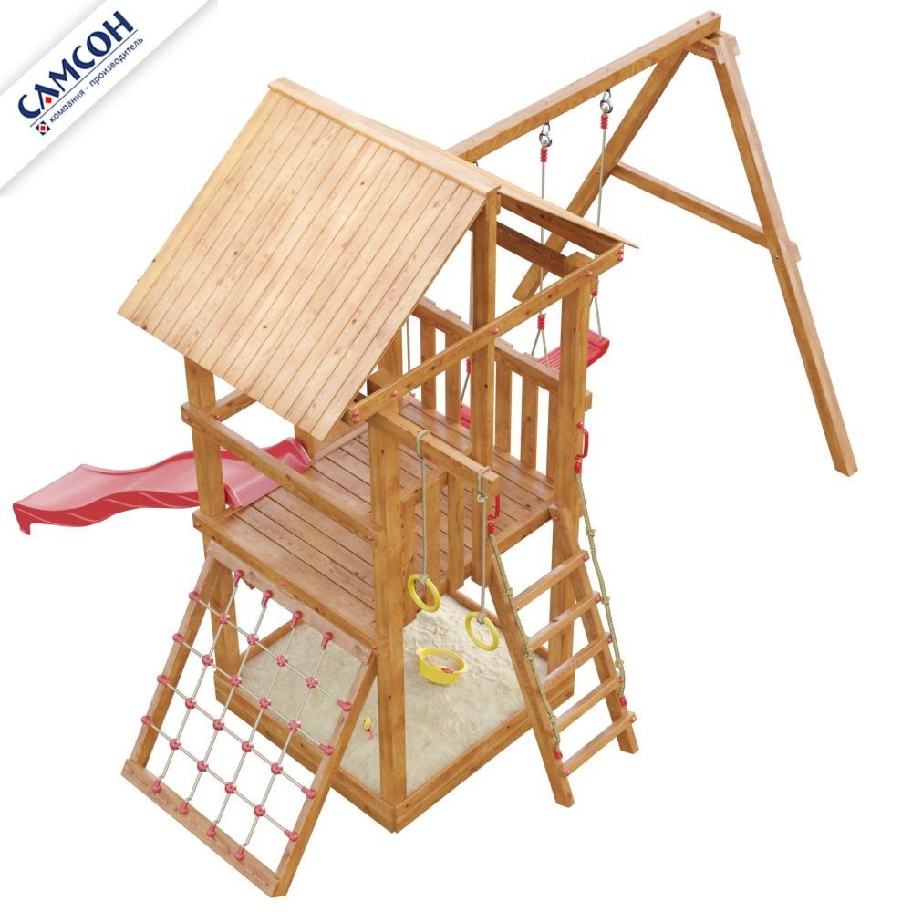 Детская игровая деревянная площадка для частного использования, для детей от 4 до 9 лет, на которой расположены элементы игрового оборудования с целью организации содержательного досуга детей, способствующие физическому и умственному развитию, оказывающие при этом благоприятное воздействие на социальную адаптацию ребёнка.ка.