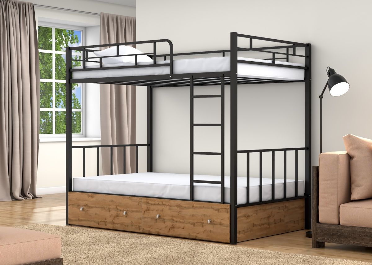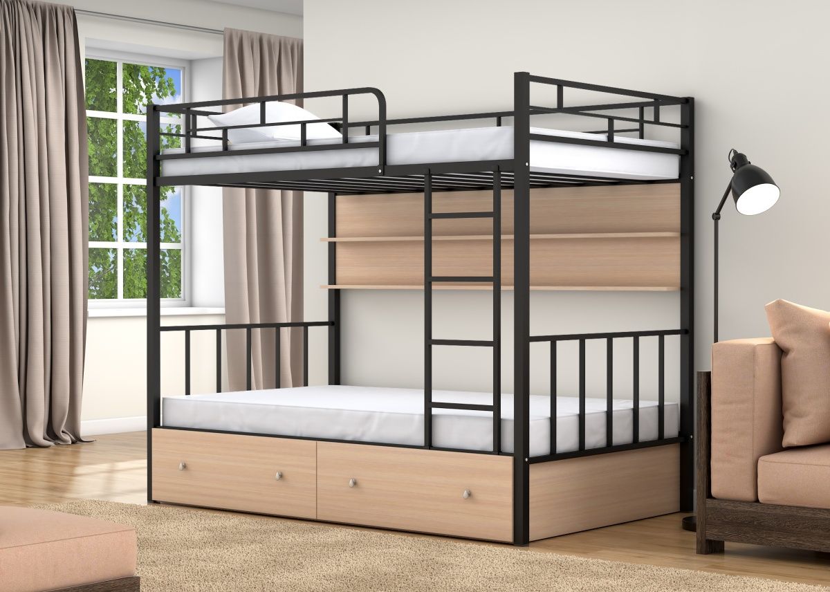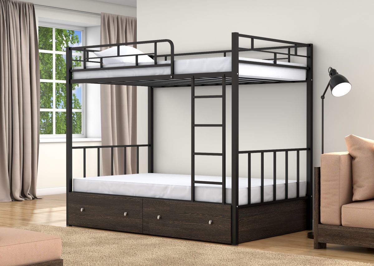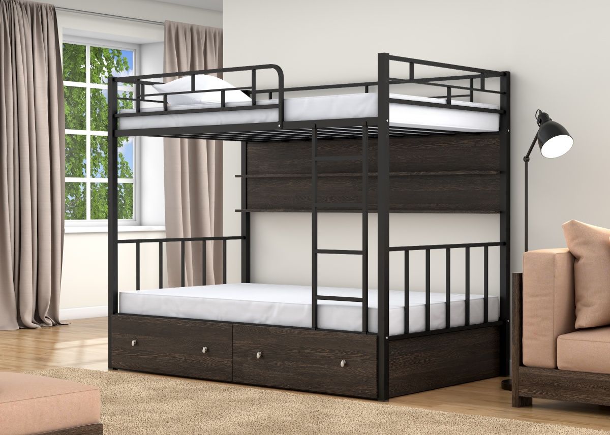 Металлическая двухъярусная кровать "Валенсия 120" с ящиками и полками. Крепкая большая металлическая двухъярусная кровать с нишами для хранения это отличный выбор для тех кому нужно сэкономить пространство и иметь большие места для сна и отдыха!