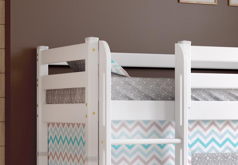 Вариант 5 полувысокая кровать «Соня» с прямой лестницей — один из примеров идеального сочетания практичности, оригинальности и долговечности. Цветовое исполнение подходит сразу для нескольких стилей, а габариты — для комнат разной площади. Мебель для детской создается из безопасных материалов с отличной износостойкостью.