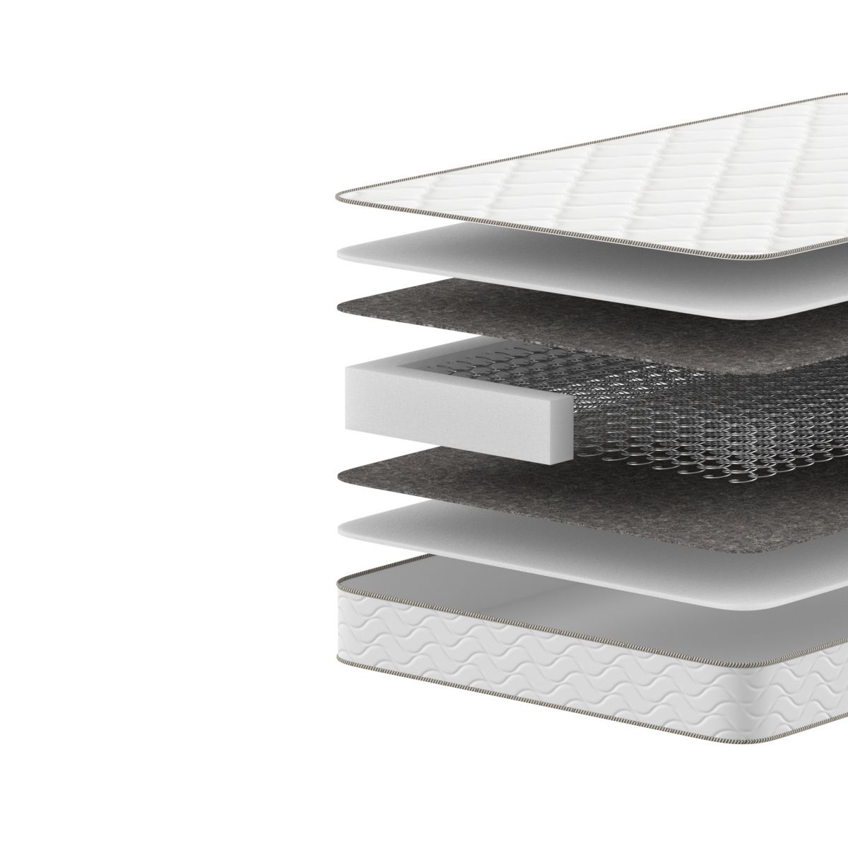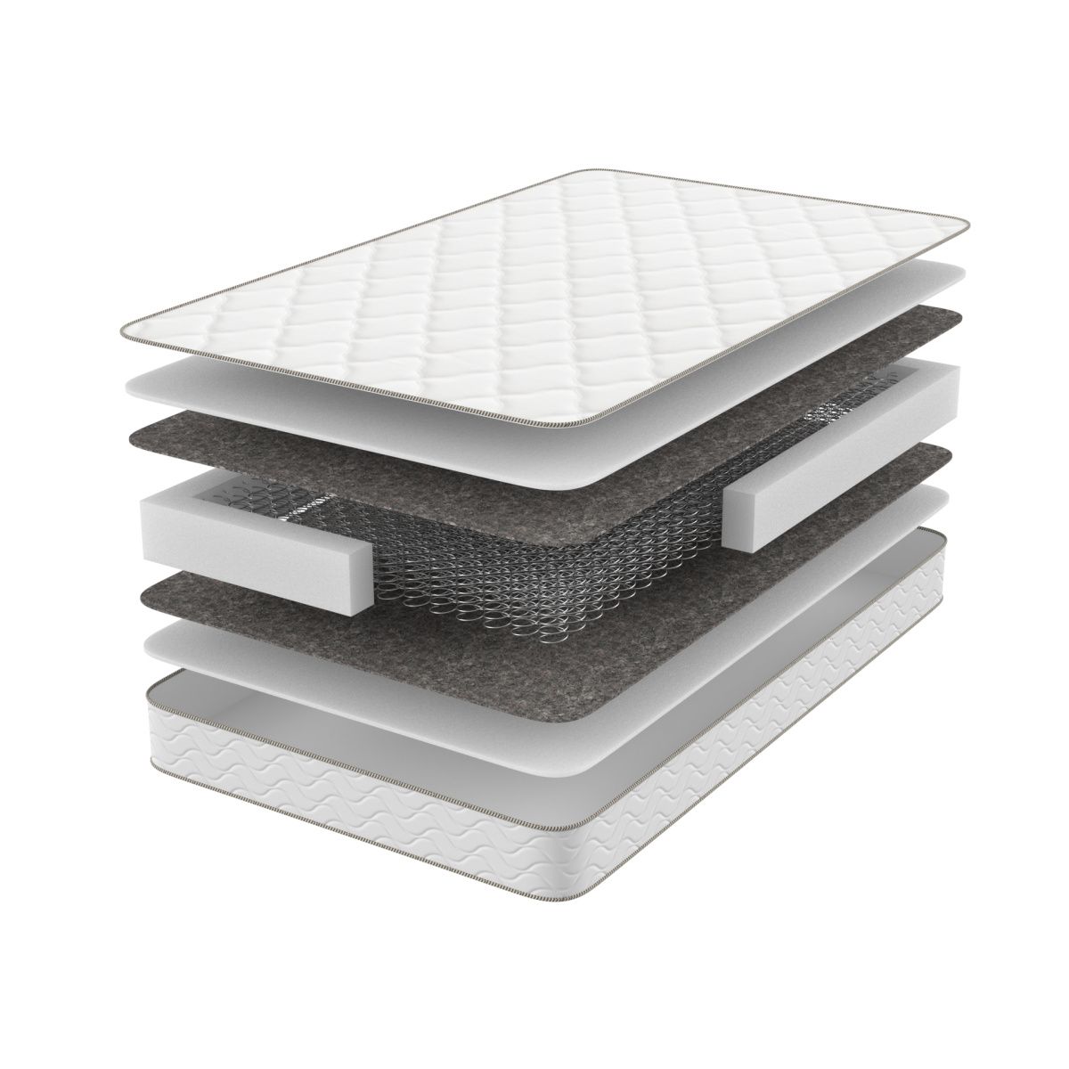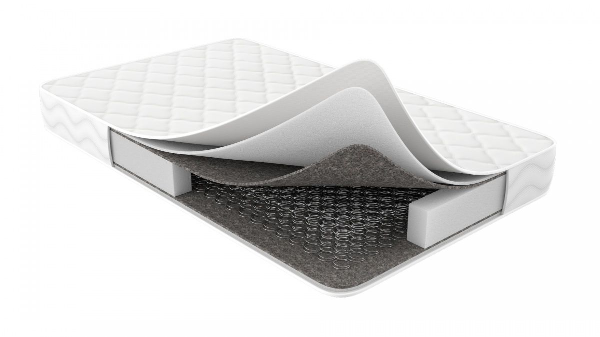 Основу матраса составляет традиционный пружинный блок «Боннель». Его образуют четырех- и пятивитковые пружины, сплетенные особым образом так, что они не трутся друг об друга и не скрипят, выполнены из высокопрочной и качественной стали. На концах пружин имеются специальные замочки, которые препятствуют их выкручиванию. К достоинствам такой конструкции можно отнести износостойкость, надежность, гигиеничность, долговечность. По периметру пружинный блок усилен слоем ППУ - упругой ортопедической пеной. Это современный мягкий наполнитель для матрасов. Пена имеет пористую структуру, что обеспечивает прекрасную вентиляцию. Эластичный, упругий, долговечный материал, по своим потребительским свойствам максимально приближен к натуральному латексу, при этом является полностью гипоаллергенным. Термовойлок - плотный материал, получаемый при горячем прессовании смеси шерстяных и синтетических волокон. Чехол модели пошит из плотного и гипоаллергенного хлопкового жаккарда. Ткань жаккард хлопок отличается оригинальностью фактуры и особой прочностью. Сложное переплетение нитей обеспечивает устойчивость материала жаккард хлопок к деформации и износу.