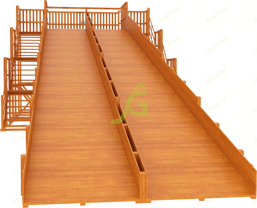 - - Двумя лестницами, которые располагаются параллельно горке.