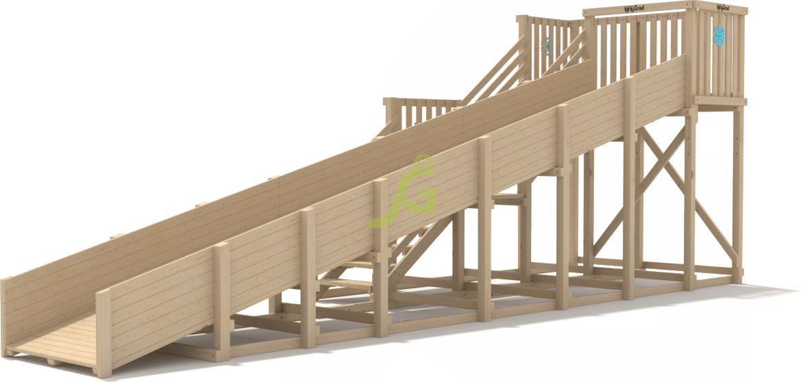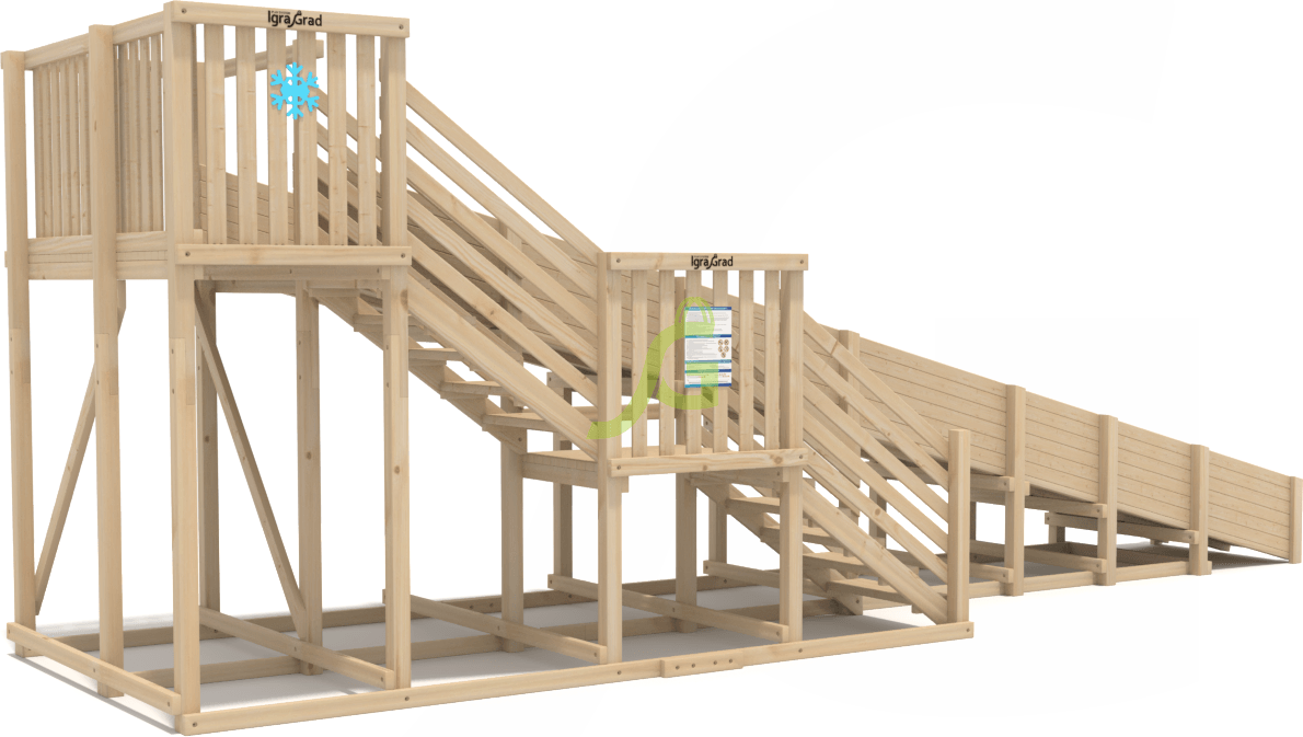 Для подъёма вверх конструкция оснащена лестницей и перилами. Рекомендуется каждый день очищать ступеньки от снега, чтобы на них не натаптывались ледышки, подвергающие детей опасности.