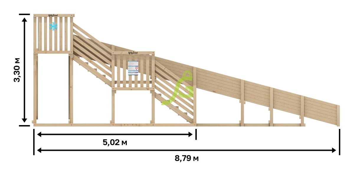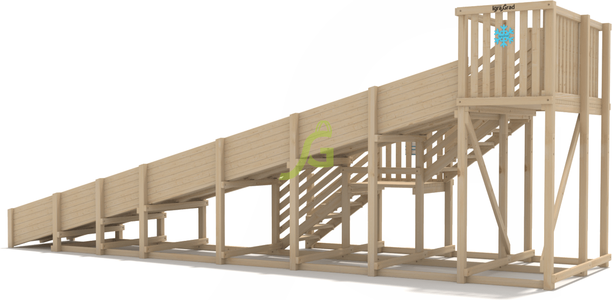 Детская заливная зимняя горка "IgraGrad Snow Fox, скат 8 м" – несущая деревянная конструкция с усиливающими балками. Она имеет скат длиной 8, 0 м, а шириной – 1, 28 м. Скат достаточно просторный, поэтому ребятам будет удобно с него скатываться в объёмной тёплой одежде. Скат заливается холодной водой при минусовой температуре, после чего горка готова к эксплуатации.